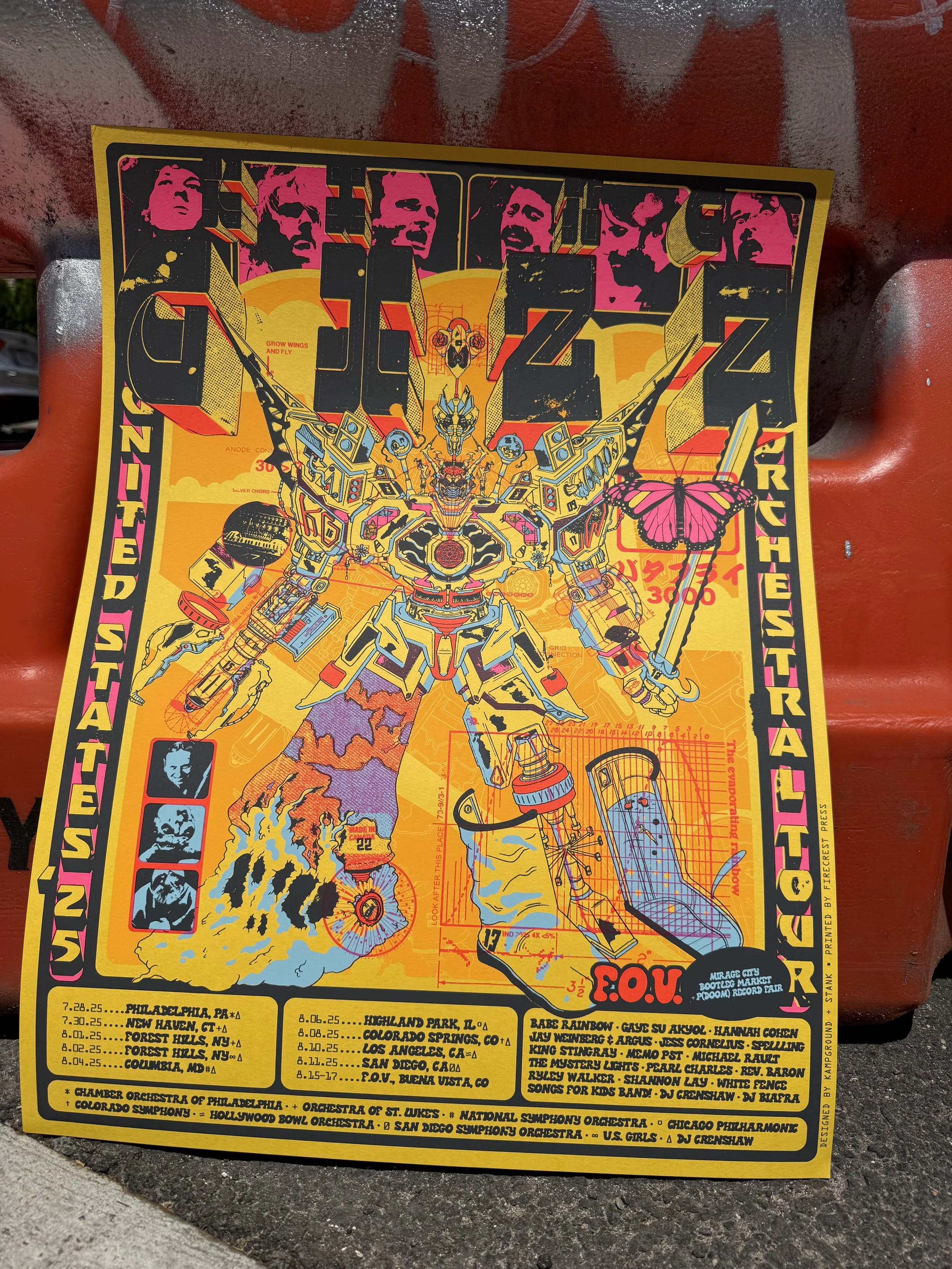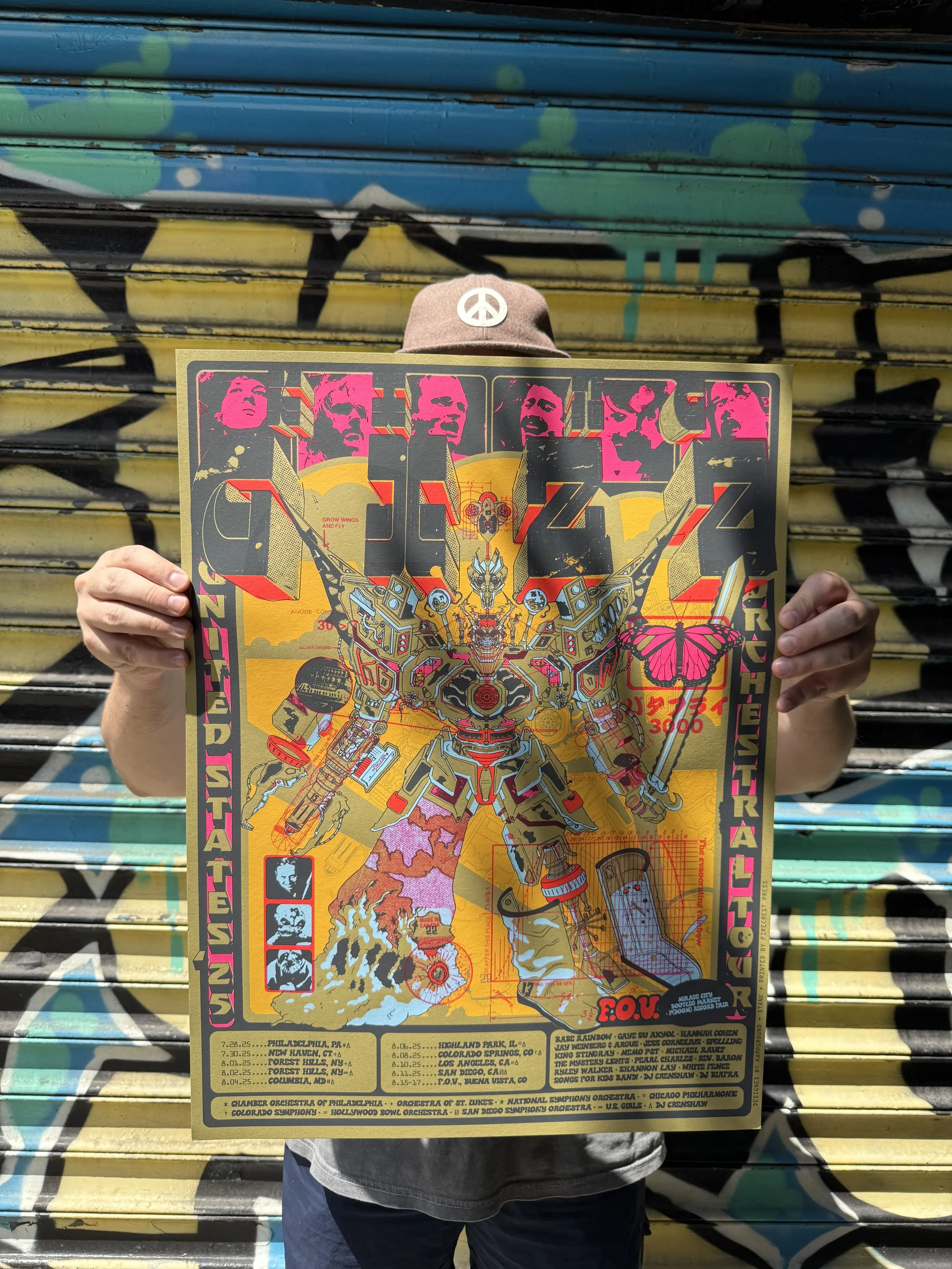 Bootleg poster designed by Kampground Designs & Stank Draws for the 2025 King Gizzard and the Lizard Wizard U.S. Tour.